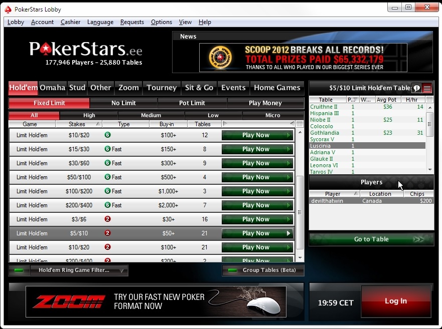 While Pokerstars is the undisputed king of online poker, it does attract higher level players from whom it is harder to win money. Also the popularity of the site makes it a magnet for those players who like to multitable which can drastically slow down the action at a table if they are too slow to respond to their turn. This issue can be avoided by joining a table with a fast action setting or playing the popular "Zoom Poker" variant where there is no waiting at all between hands. As soon as your hand is folded, BAM, you are transported to a new table all ready to go with a new hand. Online poker ON STEROIDS!!..